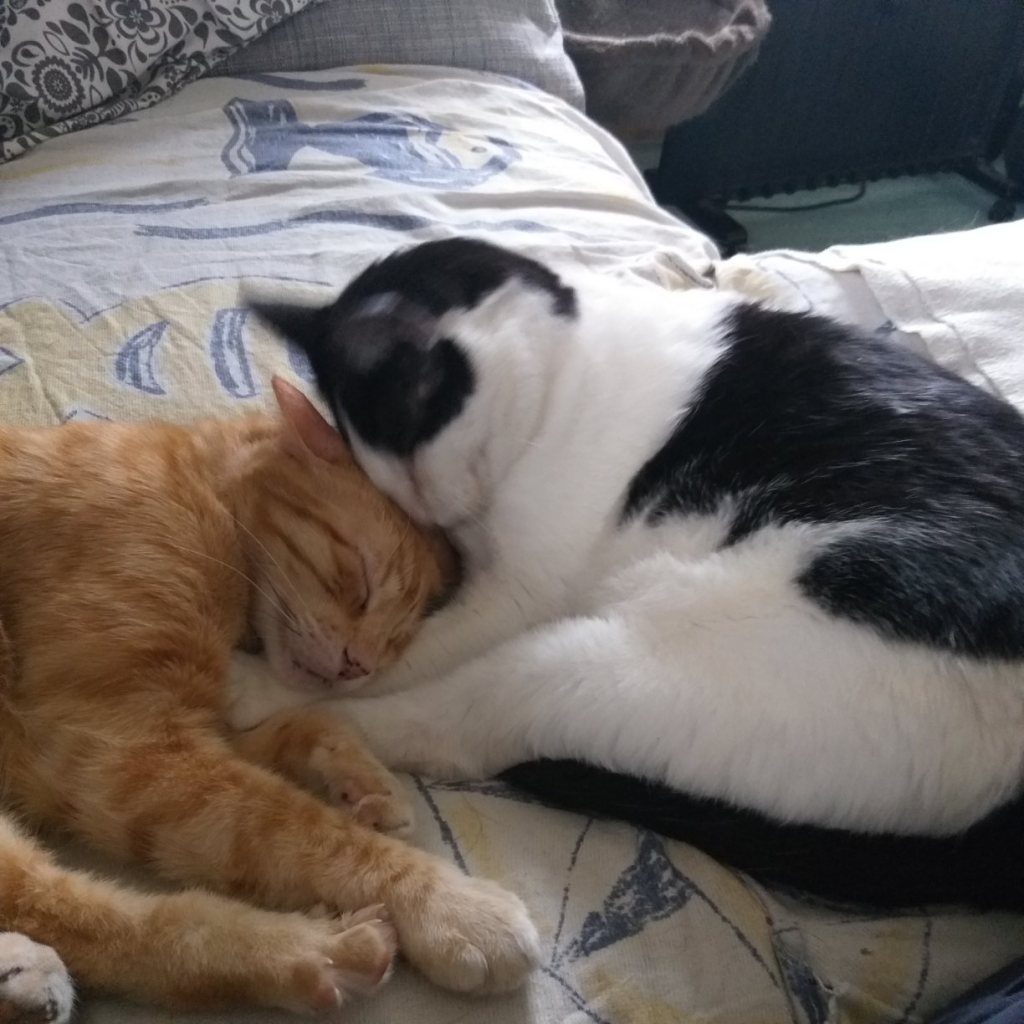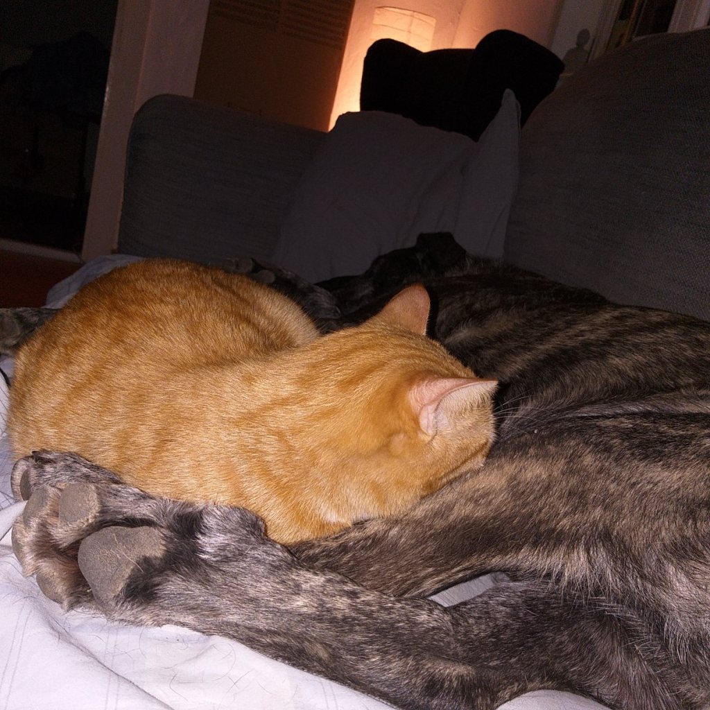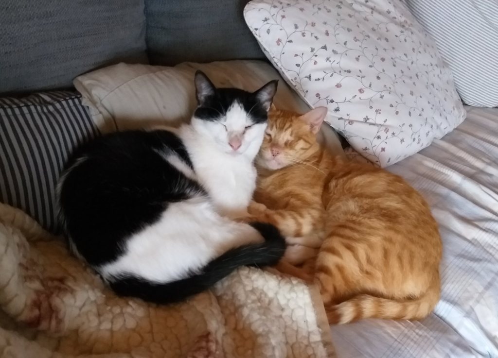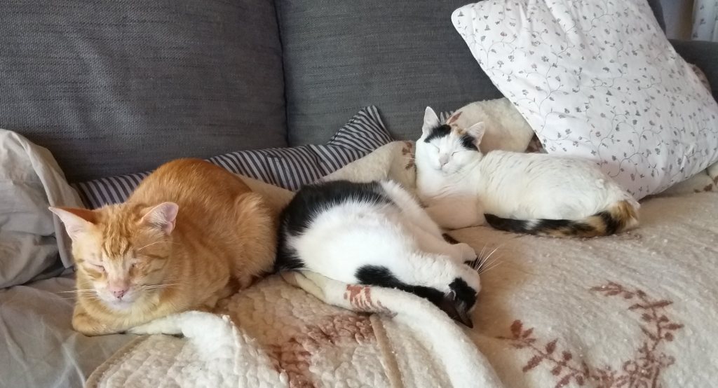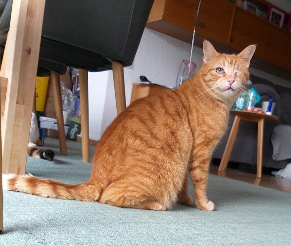 Beschreibung | Crespo kommt ursprünglich aus Spanien und hatte dort kein schönes Leben. Er wurde in einem entsetzlichen Zustand aufgefunden. Unterernährt, dehydriert und sein linkes Auge war schlimm entzündet und vereitert. Man konnte es nicht mehr retten und es musste leider entnommen werden. Crespo kommt aber damit sehr gut zurecht und er hat keinerlei Einschränkungen. So freuten wir uns so sehr, dass er im Mai 2016, zusammen mit seinen Freunden Yuko und Ayline (wir stellen die beiden separat vor) in sein neues Zuhause hier in Deutschland umziehen durfte. Nun kamen die Drei im Juli 2021 leider wieder zu uns zurück. Was das für ein Schock für das Trio bedeutete, kann man erahnen. Anfänglich lagen sie die meiste Zeit eng aneinandergekuschelt unter dem Sofa. Inzwischen sind alle drei aufgetaut. Crespo ist ein ganz lieber und verschmuster Katermann. Er kuschelt zu gerne und vor allem ist er noch recht verspielt. Er kann gar nicht genug kriegen vom Spielen mit der Federangel. Er ist den anderen Katzen gegenüber sehr friedliebend und sozial. Und natürlich ist er auch nachts mit dabei, im Bett zu schlafen. Die drei Katzen Ayline, Crespo und Yuko hängen sehr aneinander, wobei Ayline das Bindeglied zwischen den beiden Katern ist, mit denen sie abwechselnd kuschelt (s. Bilder). Die drei sollten unbedingt zusammenbleiben. Ayline und Crespo sind sehr freundlich und verträglich mit allen anderen Katzen im Haus und werden auch von allen akzeptiert. Yuko ist etwas ängstlich anderen Katzen gegenüber, vor allem vor dominanten Katern hat er Angst. Yuko soll ungehinderten Freigang in verkehrsarmer Umgebung erhalten. Er wird auf keinen Fall als reine Wohnungskatze vermittelt. Es sollte auch ein Haushalt sein, wo eine Katzenklappe vorhanden ist oder noch installiert wird. Er wird FIV und Leukose getestet, Tollwut, Schnupfen, Seuche und Leukose geimpft, gechipt, entwurmt und auch kastriert abgegeben. Yuko ist zusammen mit Ayline und Crespo bei Ingrid auf Pflegeplatz in Kirkel (Saarland) und sie können bei Interesse sehr gerne besucht werden |