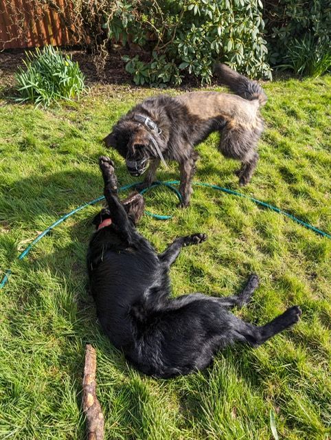 Beschreibung | Wooly wurde in Spanien unter unwürdigen Umständen gefunden. Er lief mit einem Eisenhalsband (s. Bild 12) auf der Straße entlang. Die Geschichte dazu mag man sich gar nicht ausdenken. Man fing ihn ein und brachte ihn ins Tierheim. Recht schnell wurde Wooly dann auch nach Deutschland vermittelt. Nur leider kamen die Besitzer mit Wooly nicht zurecht. Und so kam es, wie es kommen musste – Wooly kam zu uns zurück. Zwischenzeitlich stellte man auch fest, dass Wooly Probleme an der Wirbelsäule hatte. Er wurde geröntgt und die Diagnose lautete Cauda Equina. (https://www.anicura.de/fuer-tierbesitzer/hund/wissensbank/cauda-equina-syndrom-beim-hund/). So dachten wir, dass sein Verhalten möglicherweise mit den Schmerzen zusammenhing. Wooly wurde also am 7.2.24 operiert. Die O.P. war erfolgreich und Wooly geht es seither bestens. Er hat definitiv keine Schmerzen mehr und alles ist gut verheilt. Und dennoch legte Wooly sein Verhalten nicht ab. Wooly kam also in ein Erziehungscamp, wo man mit ihm fachmännisch arbeitete und ihn auch erzog. Bis zu einem gewissen Maß war das auch möglich aber nach wie vor braucht Wooly hundeerfahrene und konsequente Besitzer. Man muss ihm ganz klar vorgeben wer der Chef ist – und selbstverständlich gewaltfrei! Er braucht eine konsequente Führungsperson, die ihm zeigt, wo es lang geht, wie weit er gehen kann und die ihm Grenzen und Sicherheit vermittelt. Wir suchen nun für den hübschen Rüden eine Familie mit Hundeerfahrung, möglichst auch Kenntnisse mit Hunden mit Jagdtrieb. Wooly ist auch sehr wachsam und am Geschehen interessiert und am liebsten ist er immer mittendrin dabei. Wenn Wooly seinen Menschen gefunden hat, dann ist er sehr auf ihn fixiert und man hat einen treuen Begleiter an seiner Seite. Wooly ist gelehrig und schlau und genießt es sehr, wenn man sich mit ihm beschäftigt. Wir können uns vorstellen, dass Wooly ein guter Begleiter für verschiedene Aktivitäten wie Mantrailing oder Ähnliches wäre. Die Kommandos sitz, bleib, komm, stopp, auf den Platz beherrscht er. Er fährt problemlos im Auto mit. Er geht liebend gerne Gassi, erkundet seine Umgebung und ist generell gerne draußen aktiv. Wooly liebt es mit anderen Hunden rumzutollen. Er ist super sozial. und so würden wir es auch befürworten, dass er als Zweithund (am liebsten mit einer Hundedame) oder gerne auch in ein Hunderudel dazukommt. Wooly braucht klare Ansagen, sonst wird er schnell übergriffig. . Wooly trägt in der Pension tagsüber einen Maulkorb. Dieser dient der Sicherheit, da dort doch einiger Publikumsverkehr ist. Er lässt ihn sich aber problemlos anziehen und es stört ihn auch nicht. Was bei Wooly zu beachten ist: Wooly hat Ressourcen seinen Menschen und auch sein Futter zu verteidigen. Dieses Verhalten zeigt er nach dem Trainingscamp nicht mehr. Aber er braucht dennoch weiterhin eine konsequente Hand. Er testet auch gerne neue Personen aus. Man muss sich von Anfang an bei ihm durchsetzen und keine Schwächen zeigen. Das akzeptiert er dann auch. Wooly zeigt auch Jagdtrieb. Er sollte also an der Leine (Schleppleine) gehalten werden. Ein souveräner Ersthund wäre super (Hündin oder Kastrat). Wooly mag Hundegesellschaft. Mit anderen Rüden versucht er manchmal Streit anzufangen. Aber auch dabei kann man ihn gut unterbrechen. Man sollte ihm nicht zu viel Aufmerksamkeit geben, sonst könnte sich sein Verhalten wieder verschlechtern. Aber nicht in der Extremform wie früher. Er hat schöne Fortschritte gemacht. Derzeit ist Wooly noch in der Pension und wartet auf seine geeignete Familie. Wir würden uns sehr freuen, wenn Wooly endlich sein Zuhause finden würde. Wooly ist kastriert, gechippt und geimpft. Da sich die Kosten für Woolys Pension auf 500 Euro pro Monat belaufen und das eine immens hohe Summe für uns als ehrenamtlicher Verein ist, würden wir uns über eine Unterstützung in Form einer Patenschaften oder finanziellen Spende freuen. Bitte helft uns und Wooly! Wir freuen uns über Unterstützung auf folgendes Konto mit dem Verwendungszweck „Hilfe für Wooly“. Jeder noch so kleine Beitrag zählt für unseren Wooly! 28.04.2025 up date von Ilse. L., die mit Wooly in Kiel und Bremen auf den Bark Dates war: Wooly ist ein aufgeweckter, lebendiger und wacher Hund, der im Menschen seinen Rudelführer sucht. Er genießt auch die Streicheleinheiten. Er sehnt sich auch nach einer starken Führungspersönlichkeit, die ihm Sicherheit und Geborgenheit vermitteln kann. Die ihm die Arbeit abnimmt, selbst Entscheidungen treffen zu müssen, was ihn überfordert und zu Reaktionen verleitet, die wir nicht brauchen. Beim Spaziergang orientiert er sich auch an seinem Menschen, sucht immer wieder den Blickkontakt um sich zu vergewissern, wo es lang geht. Er verhält sich anderen Hunden gegenüber – bis auf einige Ausnahmen – freundlich und aufgeschlossen, genau so, wie jeder sozialisierte Hund bei Begegnungen reagiert. Die Ausnahme sind große Rüden. Da reagiert er heftig in die Leine springend und deutlich aggressiv. Wenn man ihn dann gut festhält, mit Körperkontakt, beruhigt er sich schnell wieder. |