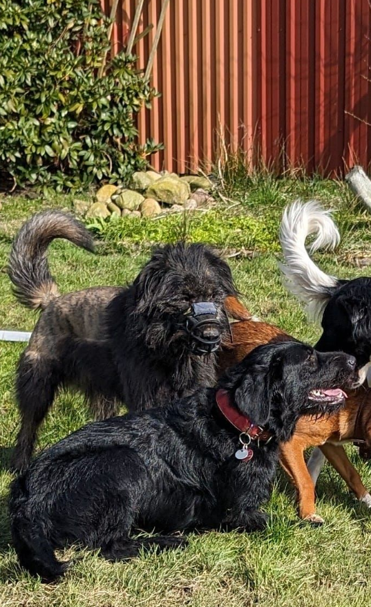 Im Februar 2024 musste Wooly auch operiert werden. Bei ihm wurde das Cauda Equina Syndrom diagnostiziert. Wir hatten Hoffnung, dass seine leichte Tendenz zur Aggression (insbesondere beim Fressen) und seine Dominanz dem Menschen gegenüber nun in den Griff zu bekommen wäre. Die OP verlief super, gesundheitlich geht es ihm sehr gut aber sein Verhalten stellte sich sukzessive wieder ein. Er hat Verletzungsabsichten, man konnte es nicht schönreden. Er muss mehr oder weniger durchgehend einen Maulkorb tragen.