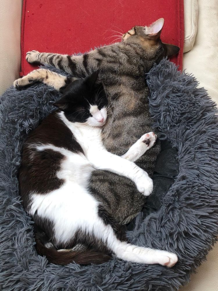 Beschreibung | Stacy wurde zusammen mit ihren beiden Schwestern auf einem Industriegelände gefunden. Sie saßen neben ihrer toten Mutter. Wahrscheinlich wurde diese angefahren und verstarb. Es muss wohl schon eine ganze Zeit her gewesen sein, denn die drei Kleinen waren stark abgemagert. Sie miauten ununterbrochen – sie hatten großen Hunger. Eine Anwohnerin entdeckte die armen Kätzchen und informierte gleich das Tierheim. Stacy traf sehr abgemagert und bereits in einem recht fortgeschrittenen Stadium der Unterernährung und mit stark entzündeten Augen im Tierheim ein. Aber sie schaffte es – Stacy gewann an Kraft, nahm schön zu und auch die Augenentzündung verheilte gut. 2021 stellte man dann bei ihr das Calicivirus fest. Ihr Mäulchen war stark entzündet. Daraufhin wurden ihr die Zähne gezogen und seither ist es auch wieder gut. Im Tierheim ist Stacy eine ganz freundliche und sehr soziale Katze. Mit den anderen Katzen hat sie keine Probleme. Sie geht dem Streit aus dem Weg und ist eher stiller Beobachter. Stacy ist auch eher unabhängig. Ist nicht die Katze, die mit anderen Katzen im Körbchen liegt. Aber dennoch hat sie eine Freundin, die Miriam (wir stellen sie separat vor). Die beiden Mädchen mögen sich gut leiden und geben sich gegenseitig Halt. Wir werden sie daher nur zusammen vermitteln. Stacy ist für ihr Alter auch noch recht verspielt. Man kann sie immer mit einer Katzenangel oder Laser Pointer zum Spielen animieren. Sie ist auch schlau und wachsam. Wenn die Pfleger in ihren Zwinger kommen, läuft sie ihnen ein Stück entgegen und beobachtet dann aus einiger Entfernung. Das letzte Stück Vertrauen fehlt Stacy leider noch, und daher braucht sie dringend eine Familie, wo sie zusammen mit Miriam einziehen kann und lernen darf, dass der Mensch doch eigentlich ganz gut ist. Stacy ist eine wunderbare Katze mit einem tollen Charakter. Zu den anderen Katzen ist sie immer freundlich, ist nicht dominant, respektiert die anderen Katzen und ist sehr sozial. Das richtige Zuhause für Stacy ist eine Familie, wo man sie nimmt wie sie ist. Wo man ihr die Chance gibt, sich zu entwickeln und wo sie Vertrauen aufbauen kann. Man darf Stacy nicht überfordern und es wird eine ganze Zeit dauern. Es braucht einfach seine Zeit, Geduld und viel Liebe. Stacy wird es lernen. Sie verdient ein Zuhause, wo sie respektiert und geliebt wird. Keine Katze hat es verdient, auf der Straße oder in einem Tierheim aufwachsen zu müssen, so wie es bei Stacy 5 Jahre lang der Fall war. Auf keinen Fall wird Stacy als Einzelkatze vermittelt. Ihre Schwestern sind beide schon lange vermittelt. Nun hat sie sich im Tierheim mit Miriam angefreundet und die beiden sollen auch zusammenbleiben. D.h. wir werden sie nur zusammen vermitteln. Es können gerne auch noch andere Katzen in der Familie leben, Stacy mag die Gesellschaft ihrer Katzenkumpels. Stacy soll in ihrem neuen Zuhause auch ungehinderten Freigang in ruhiger und verkehrsarmer Umgebung bekommen. Es soll ein Haushalt sein, wo eine Katzenklappe vorhanden ist oder noch installiert wird. Sie ist auf FIV und Leukose getestet, gegen Tollwut, Schnupfen, Seuche und Leukose geimpft sowie entwurmt, gechipt und kastriert. 28.10.2025 update der Pflegestelle: Ihren Lebensraum mit anderen Katzen teilen zu müssen, waren sie vom Tierheim in Spanien bereits gewohnt und so hatten sie sich schnell in die zuerst fremde Katzengruppe eingefügt. Sie behaupten darin ihren Platz, sind selbstbewusst, aber sehr sozial, ohne Streitereien und sehr friedfertig. Anfänglich war ihnen viel suspekt. Die Hunde, die regelmäßigen Streicheleinheiten, die neuen Katzen und man darf im Bett schlafen…… Inzwischen haben sie Vertrauen gefasst, liegen auch gerne mit im Bett, Miriam fordert mit zarten Liebesbissen ihre Streicheleinheiten ein (ohne aufdringlich zu sein). Stacy ist noch ein wenig zurückhaltend, lässt sich aber beim Fressen auch schon streicheln und schnurrt dann, sitzt nun auch gerne in der Nähe der Pflegemama. Beide haben einen guten Charakter, sind zurückhaltend neugierig, kuscheln miteinander im Körbchen, spielen gerne miteinander und mit den anderen Katzen, lieben ihren Freigang und kommen stets gerne nach Hause, um es sich hier gemütlich zu machen. Stacy ist nun zusammen mit ihrer Freundin Miriam bei Ilse L. auf Pflegeplatz in Dassendorf (bei Hamburg) |
