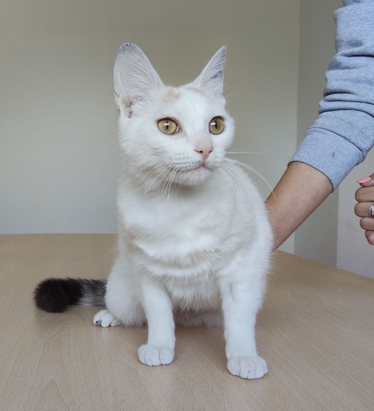 | Farbe | weiß, mit schwarzem Schwanz und einigen schwarzen Abzeichen am Kopf |