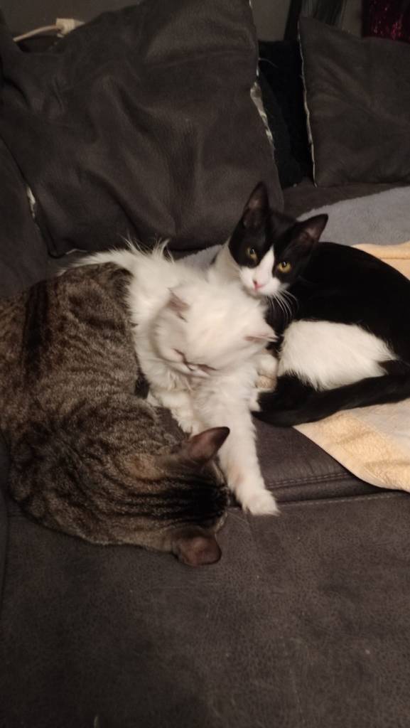 Beschreibung | Beide Jungs haben in ihrem jungen Leben noch nicht viel Schönes erfahren dürfen ….. außer nun auf der Pflegestelle bei Paqui und Marieta. Fleißige Leser unserer HP kennen sie von den Kastrationsaktionen. Sie sind die beiden, die seit Jahren Katzen einfangen, kastrieren und an betreute Futterplätze übergeben. Die scheuen und wilden Katzen dürfen zurück an ihren Fundort. Die Katzenkinder werden von Marieta und Paqui aufgenommen, tiermedizinisch behandelt, geimpft und kastriert und werden dann zur Adoption freigegeben. So kamen bereits Mira und Marlene in unsere Obhut und nun die beiden kleinen, knuffigen Katermänner Kuga und Nando. Kuga fand man unter einer Motorhaube. Da hatte er sich versteckt und von seiner Mutter war keine Spur. So hatte der kleine Kerl richtig Glück, dass man ihn fand und er zu Marieta und Paqui kam. Kuga ist ein sehr süßer kleiner Kater. Verspielt, menschenbezogen, sehr verschmust, sehr freundlich, aber noch etwas schüchtern. Aber er ist noch jung und wird in seiner neuen Familie schnell Vertrauen fassen. Nando wurde mit seiner Mutter und 5 weiteren Geschwistern einfach in einem Müllcontainer entsorgt. Sie lagen frischgeboren neben ihrer Mutter in dem Container und hätten keine Überlebenschance gehabt, hätte man sie nicht entdeckt und Marieta und Paqui informiert. So kam die kleine Familie also auf deren Finca. Die Babys wurden mit der Flasche aufgezogen und das merkt man bei Nando sehr deutlich. Alle Katzen wurden zwischenzeitlich kastriert und warten nun auf ein schönes Zuhause. Nando ist der ruhigere der beiden Jungs. Aber dennoch ist er verspielt, sehr menschenbezogen und seeeeehhhr verschmust. Er liebt Siestas mit Kuscheleinheiten. Unbedingt die Videos anschauen! Nando und Kuga wollen spielen, sie sind lebhaft, wie Katzenkinder nun mal sind, und darüber muss man sich bewusst sein. Katzenkinder laufen nicht so einfach nebenher. Sie brauchen Zuneigung, Aufmerksamkeit und Betreuung. Man muss ihnen zeigen, dass sie Vertrauen haben und sich sicher fühlen können. Und da darf das Spielen und Schmusen nicht zu kurz kommen. Wir suchen für die beiden Katermänner (die wir auf keinen Fall trennen werden) ein liebes Zuhause, wo sie Familienmitglieder werden und nicht nebenher laufen. Beide Jungs sind menschbezogen, verschmust und suchen die Nähe des Menschen. So sollen sie auch im Bett schlafen dürfen. Liebe Kinder sind herzlich willkommen. Ob sie mit Hunden klar kommen, wissen wir nicht, aber sie sind jung und werden gegebenenfalls mit ihnen aufwachsen. Sehr gerne können Kuga und Nando auch in eine Gruppe mit weiteren Katzen. Ab 10 Monaten und nach Kastration kann man ihnen Freigang in sicherer und katzengerechter Umgebung gewähren. Es soll ein Haushalt sein, wo eine Katzenklappe vorhanden ist oder noch installiert wird. Sie werden auf keinen Fall als reine Wohnungskatzen vermittelt. Sie werden FIV und Leukose getestet, Tollwut, Schnupfen, Seuche und Leukose geimpft, entwurmt , gechipt und kastriert abgegeben. Nando und Kuga sind bei Claudia auf Pflegeplatz in Pfullingen. Wer Interesse an den Jungs hat, kann sie gerne besuchen kommen. Kontaktbesuch bei Julie S. –> 04.02.2026 Sybille |