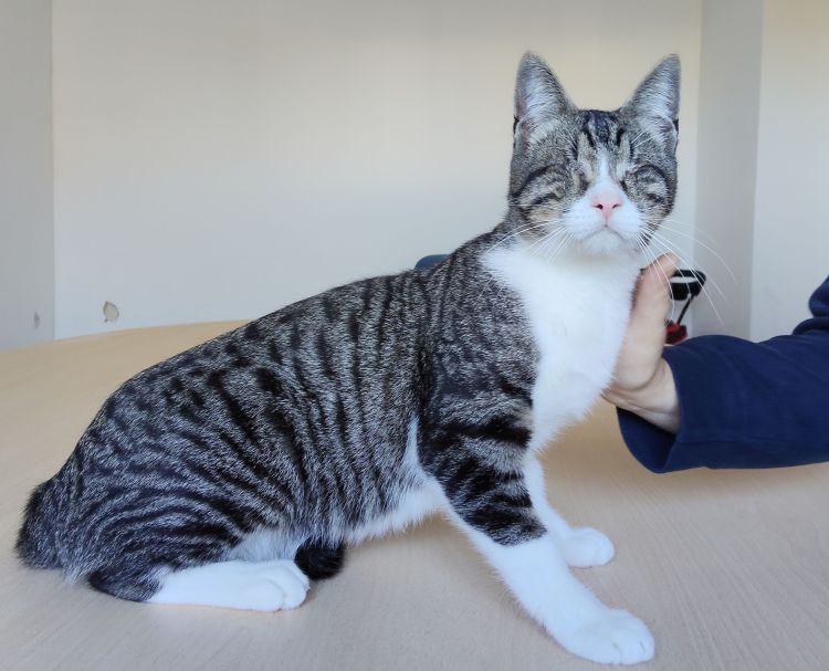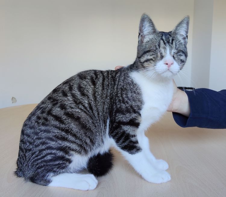 | Farbe | grau getigert mit weiß |