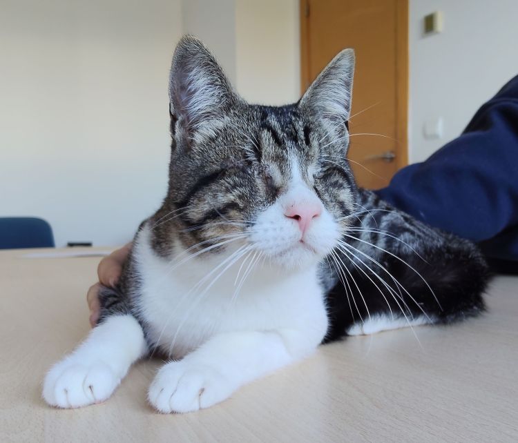 Beschreibung | Cedrik, Camala und Carlo wurden im Alter von zwei Monaten an einer Straße aufgefunden. Sie kauerten aneinandergedrückt hinter einer Hecke. Ihre Augen waren so sehr mit Eiter verklebt, dass sie nichts sehen konnten. Die drei Geschwister waren in einem sehr schlechten Zustand. Im Tierheim wurden sie gleich behandelt und bekamen Antibiotika, aber leider waren die Augen nicht mehr zu retten und man musste sie entfernen. Aber alle drei kommen sehr gut damit zurecht. Wenn sie ihre Umgebung kennengelernt haben, merkt man es ihnen kaum an, dass sie nichts sehen können. Es ist wirklich erstaunlich. Cedrik ist ein etwas schüchterner, aber sanftmütiger und geselliger Kater. Er ist absolut friedliebend und devot. Er ist anfänglich schüchtern. Aber wenn er Vertrauen gefasst hat und er seinen Menschen kennt, lässt er sich gerne streicheln und schätzt jede Zuneigung. Dann kann man ihn auch knuddeln und mit ihm schmusen. Er steht seinem Bruder Carlo (wir stellen ihn separat vor) sehr nahe; die beiden sind immer zusammen. Daher wollen wir die beiden Brüder auch auf alle Fälle zusammen vermitteln. Allerdings versteht sich Cedrik auch prima mit anderen Katzen. Daher wäre es absolut möglich, ihn und Carlo schon in eine bestehende Katzengruppe zu integrieren. Wir suchen für Cedrik ein liebevolles Zuhause mit Menschen, wo er beachtet und beschmust wird, wo man sich mit ihm beschäftigt und kuschelt und wo er Familienmitglied sein darf. Und vor allem wo man ihn so akzeptiert, wie er ist. Auch wenn Cedrik blind ist, so hat er Freude am Leben und kann ohne Probleme in einer Katzengruppe gehalten werden. Liebe Kinder sind herzlich willkommen. Mit ruhigen Hunden kommt Cedrik gut zurecht. Cedrik ist zwar blind, aber er soll dennoch nicht als reine Wohnungskatze leben müssen, sondern einen kleinen eingezäunten Garten zur Verfügung haben. Er wird auch nicht als Einzelkatze vermittelt. Wie bereits erwähnt, möchten wir ihn gerne mit seinem Kumpel Carlo vermitteln. Gerne können auch bereits in der Familie lebende Katzen vorhanden sein. Cedrik wird FIV und Leukose getestet, Tollwut, Schnupfen, Seuche und Leukose geimpft, entwurmt, gechipt und kastriert abgegeben. |