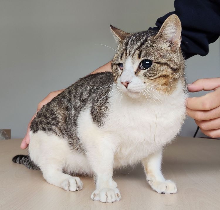 | Farbe | grau getigert mit weiß |