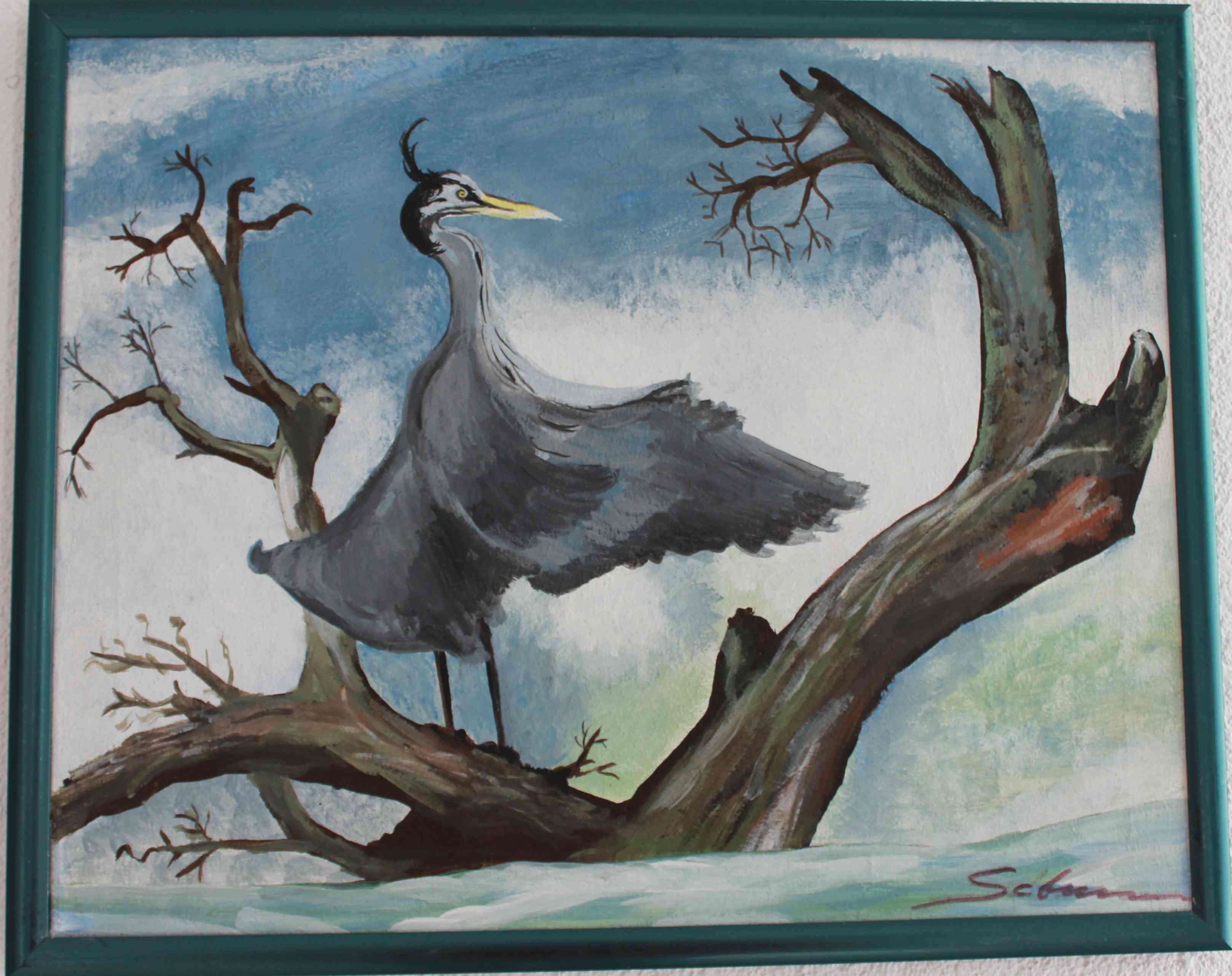 Ihr Mann war Hobbymaler. Die Bilder sind teilweise gerahmt, haben aber auch ab und an kleine Macken.