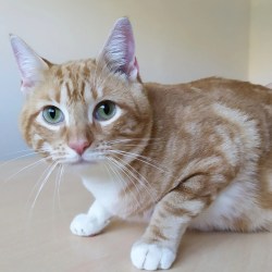 Jasper wurde im Alter von etwa acht Wochen an einer Futterstelle gefunden. Er war panisch und ängstlich und man bat Edith, ihn in ihrer Katzenherberge aufzunehmen. Er hat seine Panik zwar inzwischen abgelegt, aber er ist immer noch schüchtern und braucht seine Zeit. Leider wurde er positiv auf Leukose getestet.