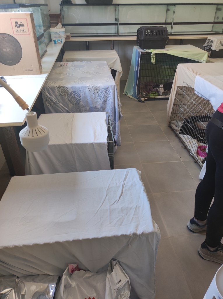 Wir schauen uns weiter das Gelände an und greifen ein wichtiges Thema auf, welches uns sehr am Herzen liegt. Ein Gehege, nur für die Leukose Katzen. Aktuell müssen sie alleine und in kleinen Käfigen auf ein besseres Leben hoffen. Kein Zustand wenn man weiß, dass es gerade bei Leukose Katzen wichtig ist, dass sie keinen Stress haben und einigermaßen zufrieden sind. Zudem etwas frische Luft und evtl. ein bisschen Sonne genießen dürfen. Nach vielen Gesprächen und Ideen gibt es nun tatsächlich eine Lösung. Ein altes, recht großes Gehege, wird umplatziert, als Freigehege neu aufgestellt. Aktuell ist der Platz ungünstig, da es abschüssig steht, fest verankert und bei einer erneuten Flut eine Todesfalle für die Fellnasen wäre. Wir sind gespannt auf das Ergebnis und werden dann noch mal berichten. Silvia ist es ebenfalls ein großes Anliegen und es löst viele Probleme die wir aktuell bzgl. der Leukose kranken Katzen vor Ort haben. Drückt die Daumen, dass es schnell umgesetzt werden kann. Die Miezen warten schon!
