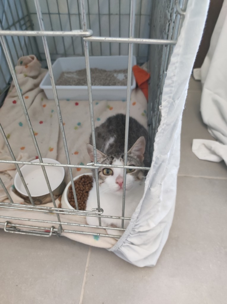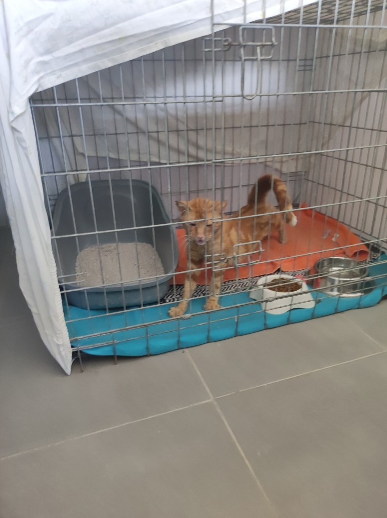 Wir kommen nochmal zurück zu Rodolfo: er lässt uns keine Ruhe und zusammen mit Silvia im Schlepptau, fahren wir wieder ca. 1km zurück zu der Stelle, wo wir ihn gesehen haben und finden ihn: in einem erbärmlichen Zustand. Silvia kennt die Gegend und auch die Menschen, die dort die Katzen halten. Die Katzen werden nicht medizinisch versorgt und sich selbst überlassen, wenn sie krank sind. Rodolfo gehört dazu. Er ist einer von vielen Katzen stellvertretend denen es so ergeht in ihrem Leben. Er hat sich, wenn man so will, zum Sterben abgelegt. Somit ist es nicht verwunderlich, dass er sich ohne jeden Widerstand von uns einpacken lässt, damit wir ihn mitnehmen können. Gesagt getan: zu dem Zeitpunkt gehen wir allerdings fast davon aus, dass wir ihn nur noch erlösen können. Aber es kommt anders. Silvia kümmert sich sofort um ihn, er kommt auf die Quarantäne-Station und bekommt erst mal etwas zu essen – wahrscheinlich das erste Mal seit langer Zeit, nur für ihn alleine. Und er isst!!! Ein gutes Zeichen. Wir sind nun sicher, er kommt durch und er will leben! Nun folgt das ganze Standardprogramm sobald er einigermaßen fit ist: Impfungen, Bluttests und vor allem Kastration. Aktuell wissen wir: Rodolfo erholt sich nach wie vor und stetig, er schmust, und er ist dankbar. Wir werden für ihn ebenfalls – beizeiten – ein Zuhause suchen. Also schaut mal vorbei – bestimmt wird er bald auf unserer Homepage zu finden sein: Wir hoffen auf ein Happy End!