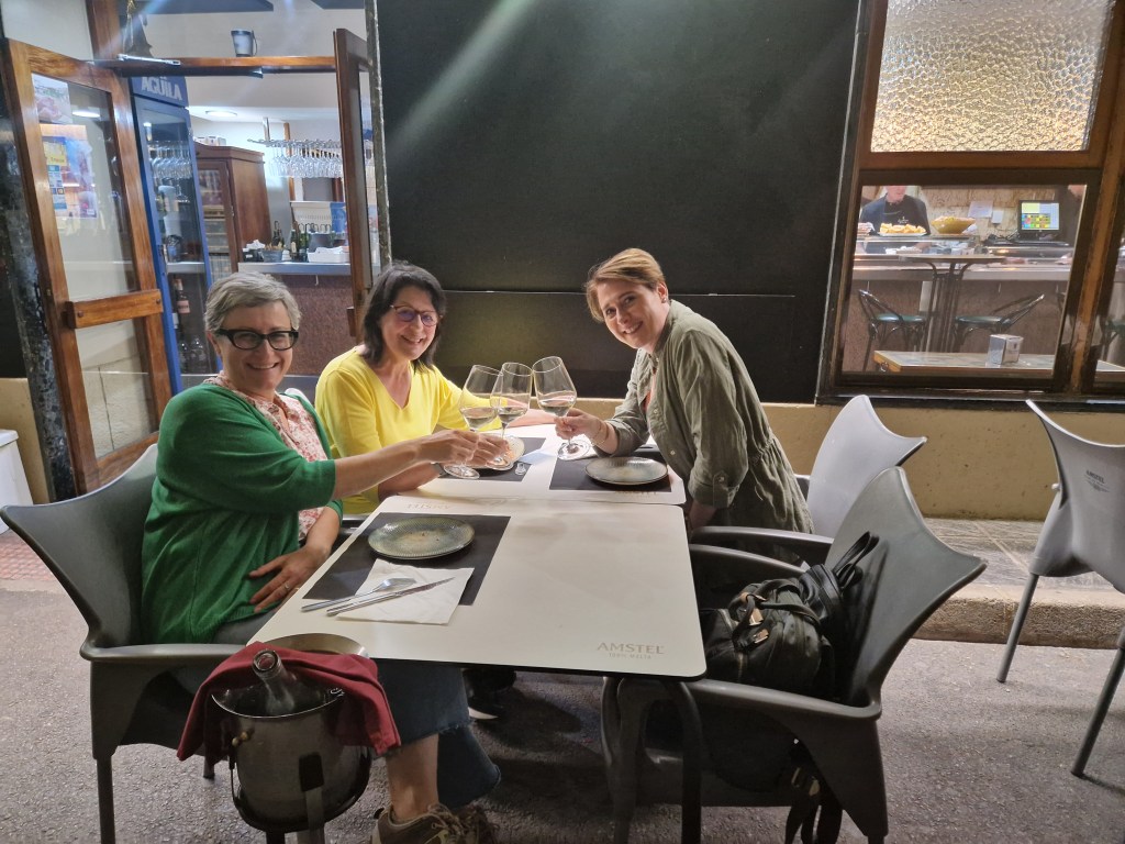 Sybille und ich (Daniela) sind – leider – zu unterschiedlichen Zeiten in Alicante gelandet (die Flugzeiten waren mal besser😉), sodass Sybille leider ein paar Stunden Wartezeit hatte aber diese gut genutzt hat, um Paloma treffen zu können. Als ich dann abends gelandet war, haben die beiden am Ausgang gewartet, wir haben uns dann von Paloma verabschiedet und sind zu unserem Hotel gefahren und haben uns dann abends mit Ana getroffen. Wir haben sie lange nicht mehr gesehen und daher war die Wiedersehensfreude sehr groß. Wir hatten ein schönes Dinner und einen super Abend zusammen.